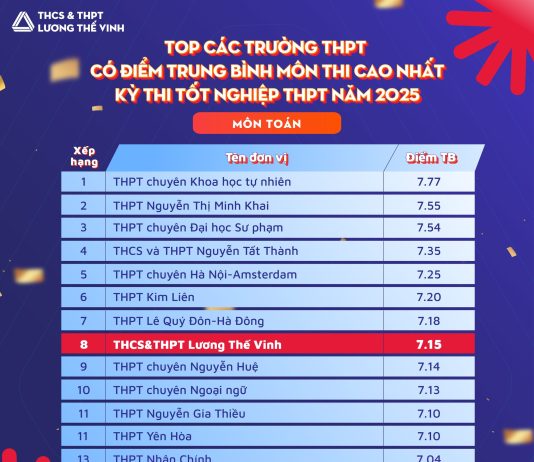 LƯƠNG THẾ VINH GHI DẤU ẤN TRONG TOP CÁC TRƯỜNG CÓ ĐIỂM THI TỐT NGHIỆP CAO NHẤT HÀ NỘI 2025