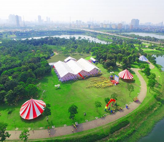 Học sinh khối cấp 2 sinh hoạt ngoại khóa tại công viên Yên Sở