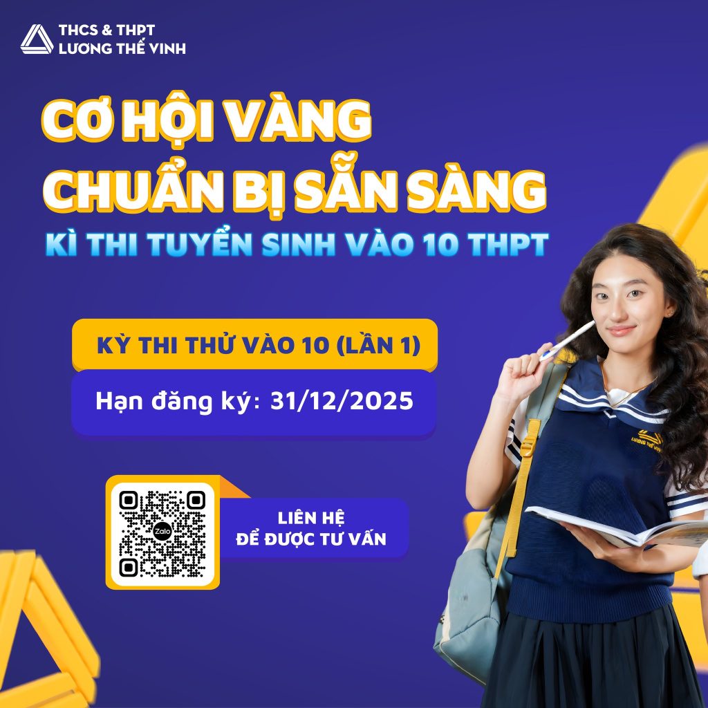 Nhằm giúp học sinh lớp 9 đánh giá đúng năng lực trong điều kiện thi nghiêm túc, đồng thời làm quen với cấu trúc đề, thời gian và hình thức tổ chức của kỳ thi tuyển sinh vào lớp 10 THPT, Trường THCS & THPT Lương Thế Vinh tổ chức 04 Kỳ thi thử vào lớp 10, năm học 2025 – 2026.