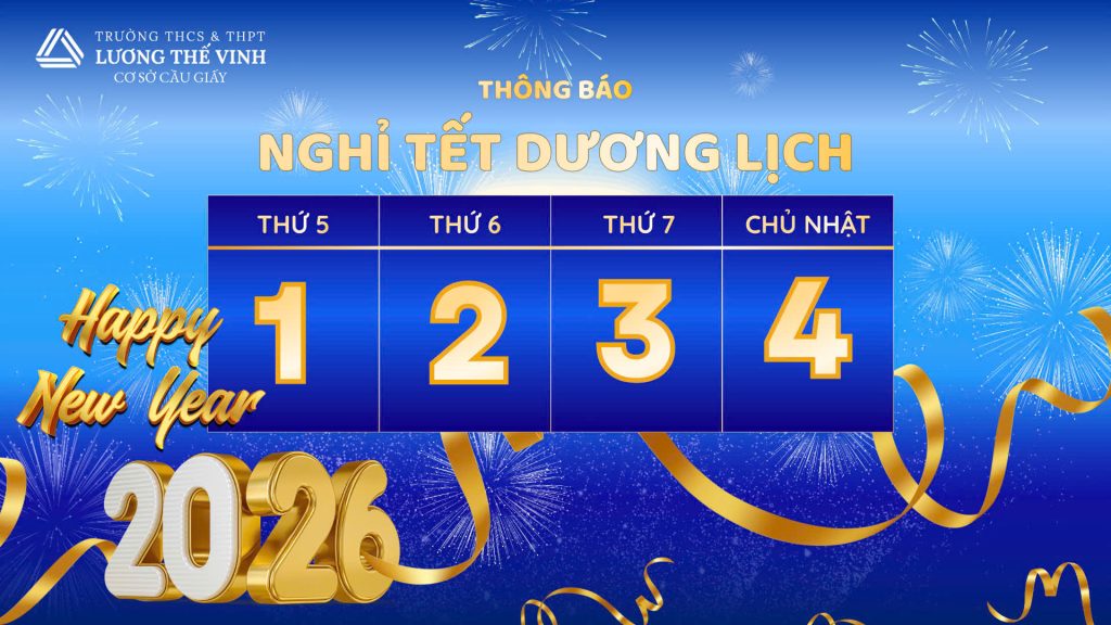 Nhân dịp Tết Dương lịch 2026, Trường THCS & THPT Lương Thế Vinh – Cơ sở Cầu Giấy xin trân trọng thông báo lịch nghỉ lễ như sau: