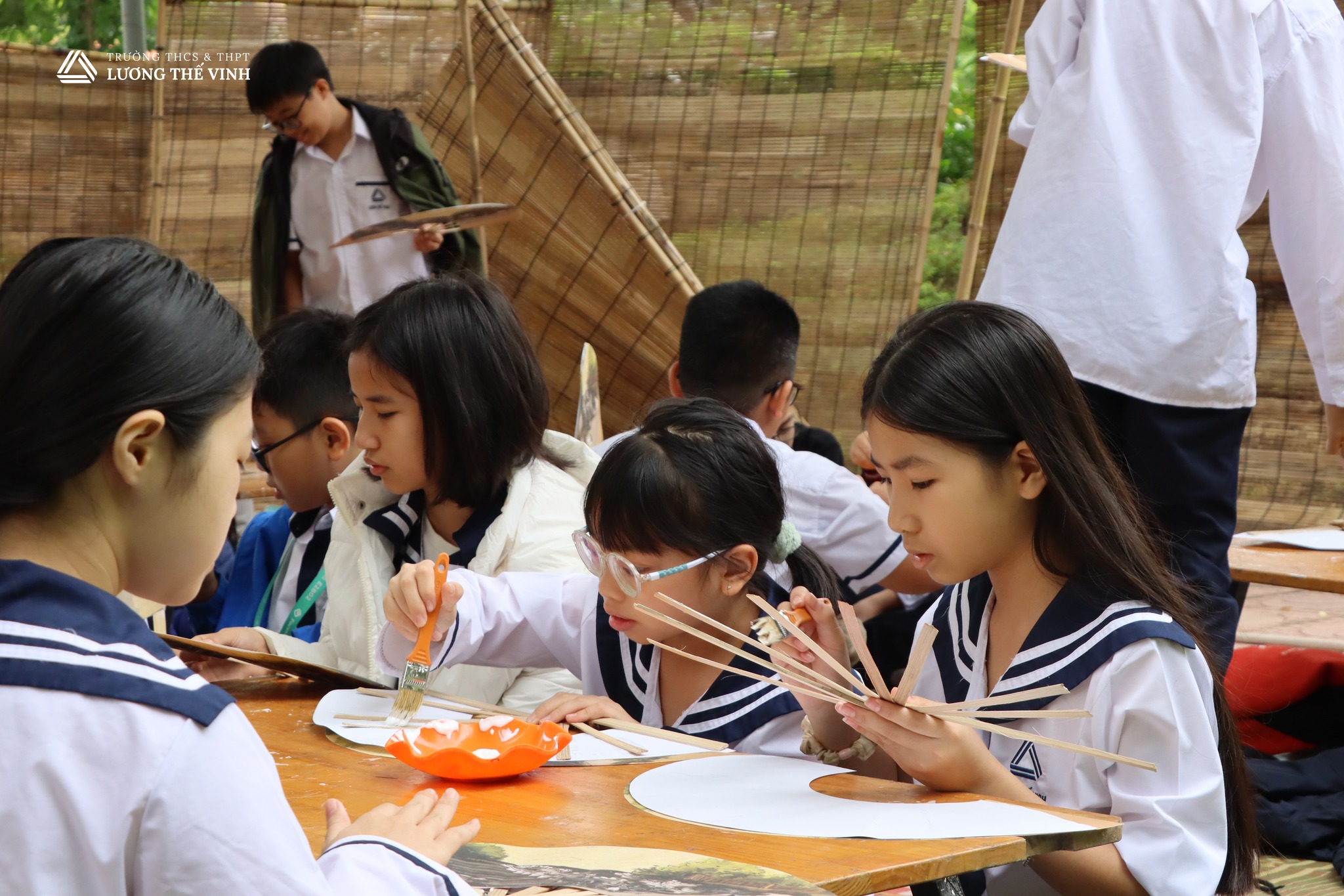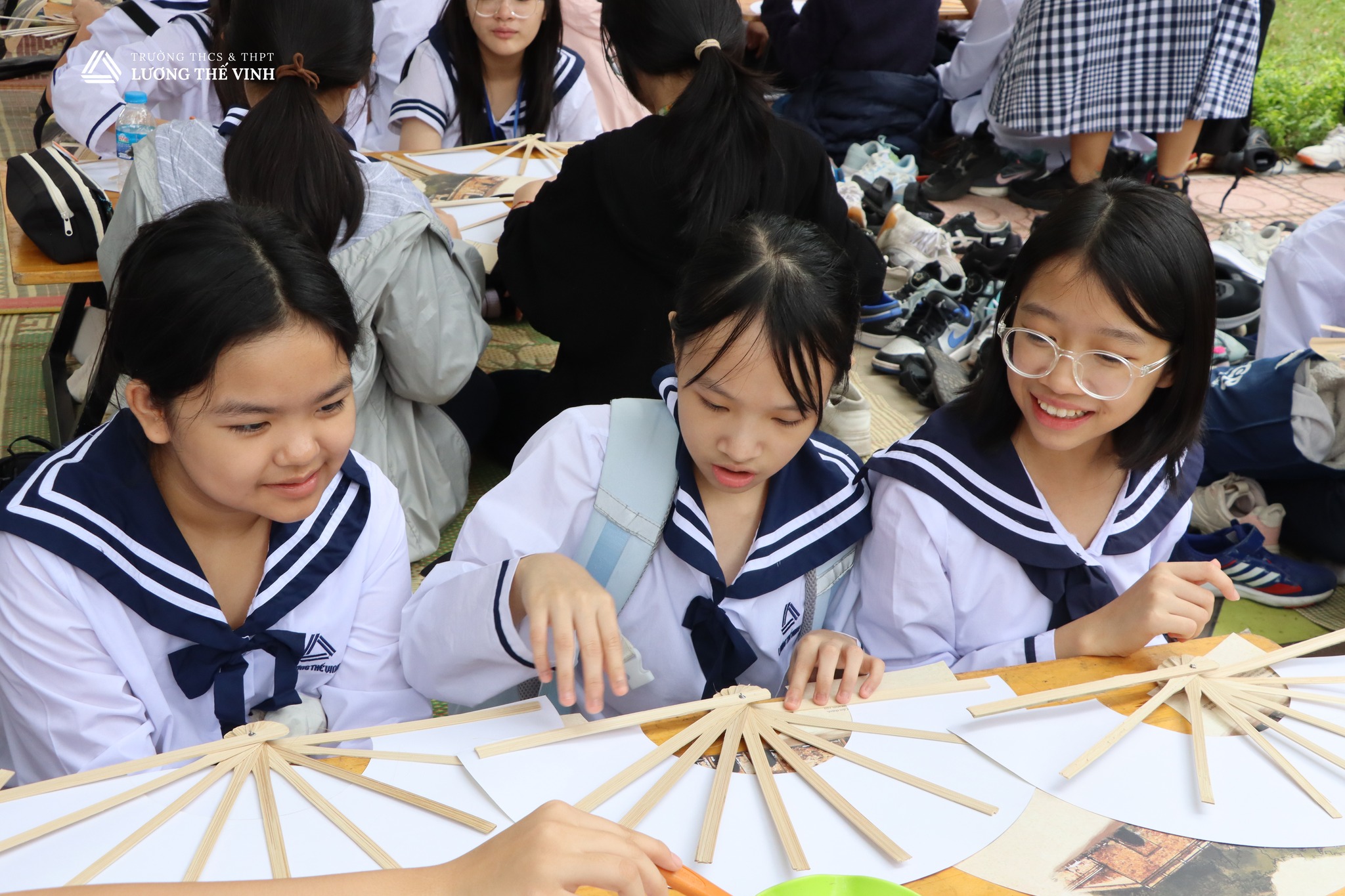 Và khi được tự tay dán quạt, làm đồ thủ công các em đã nhận thêm được bài học về sự kiên trì, tỉ mỉ.
