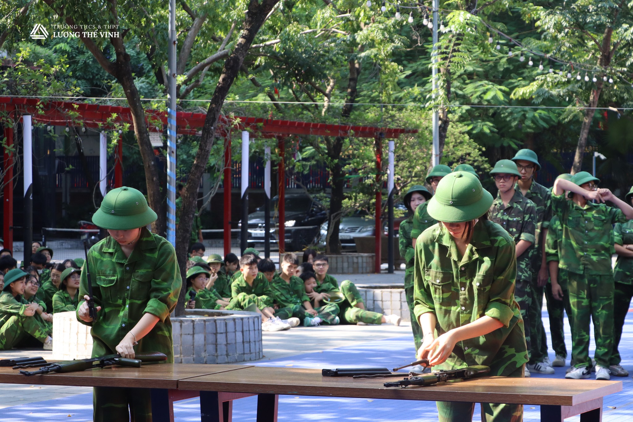 Các học học sinh khối THPT của trường Lương Thế Vinh – Cơ sở Cầu Giấy vừa hoàn thành hành trình thử thách bản lĩnh qua chuỗi nội dung thi vô cùng hồi hộp và cũng ngập tràn hào hứng: Từ điều lệnh đội ngũ đầy nghiêm cẩn, đều bước, rắn rỏi đến tháo lắp, thi bắn súng nhanh, chính xác và đầy tập trung. Toàn bộ hoạt động được tổ chức trong không khí kỷ luật – an toàn – sáng tạo.