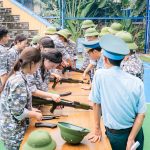 Buổi huấn luyện thực tế cũng trở nên sôi nổi – gắn kết khi các em đã thành thục hơn các tác phong quân đội hay thao tác tháo lắp súng…