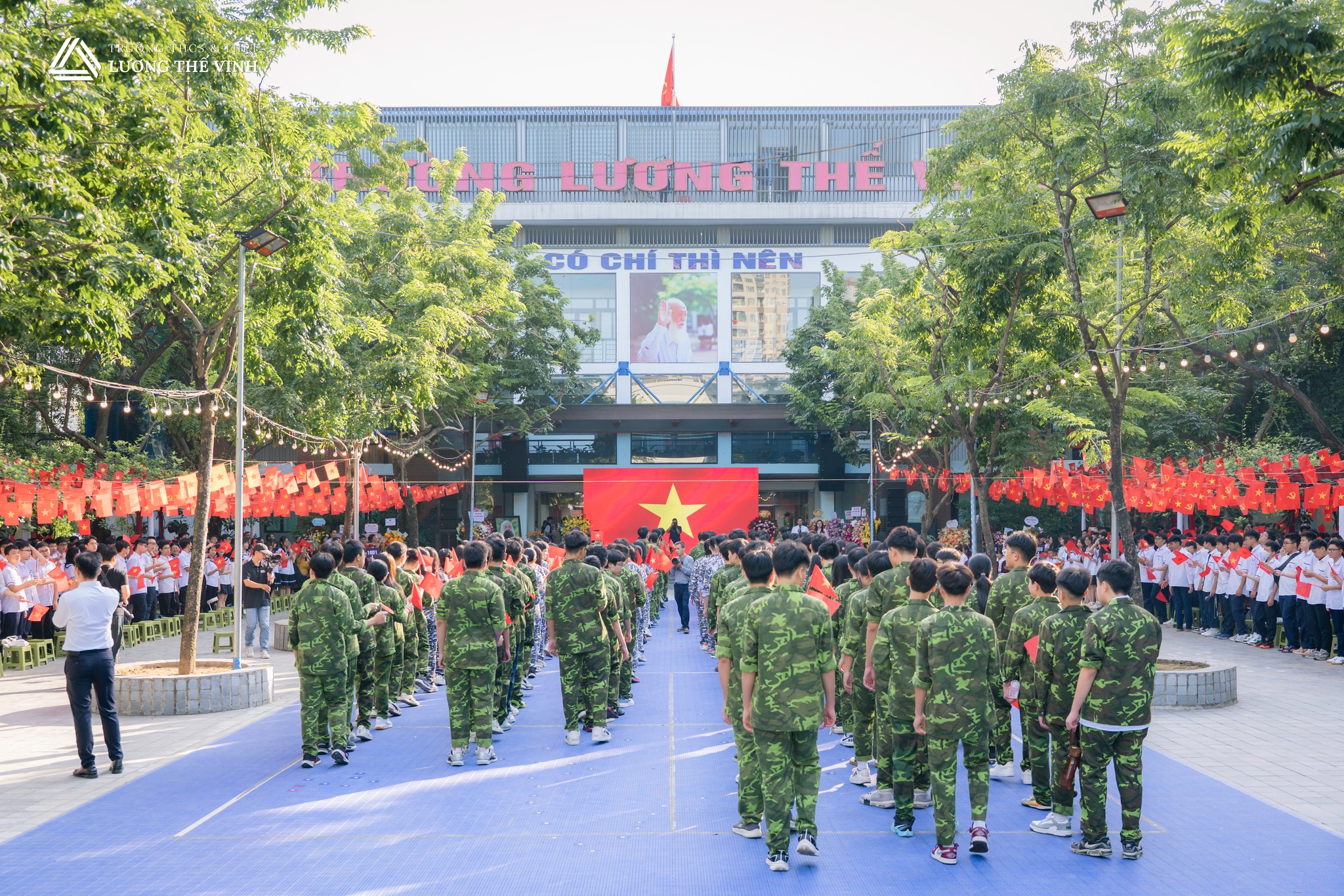 Trường THCS&THPT Lương Thế Vinh – Cơ sở Cầu Giấy từ trong nắng sớm ngày 5/9 đã rộn ràng tiếng trống, niềm vui và những gương mặt rạng rỡ. Hàng nghìn trái tim học trò đã hòa chung nhịp đập trong Lễ Khai giảng năm học 2025-2026 và cũng sống trọn trong thời khắc thiêng liêng của Tổ quốc, kỷ niệm 80 năm Quốc khánh và 80 năm thành lập Bộ Quốc gia Giáo dục.