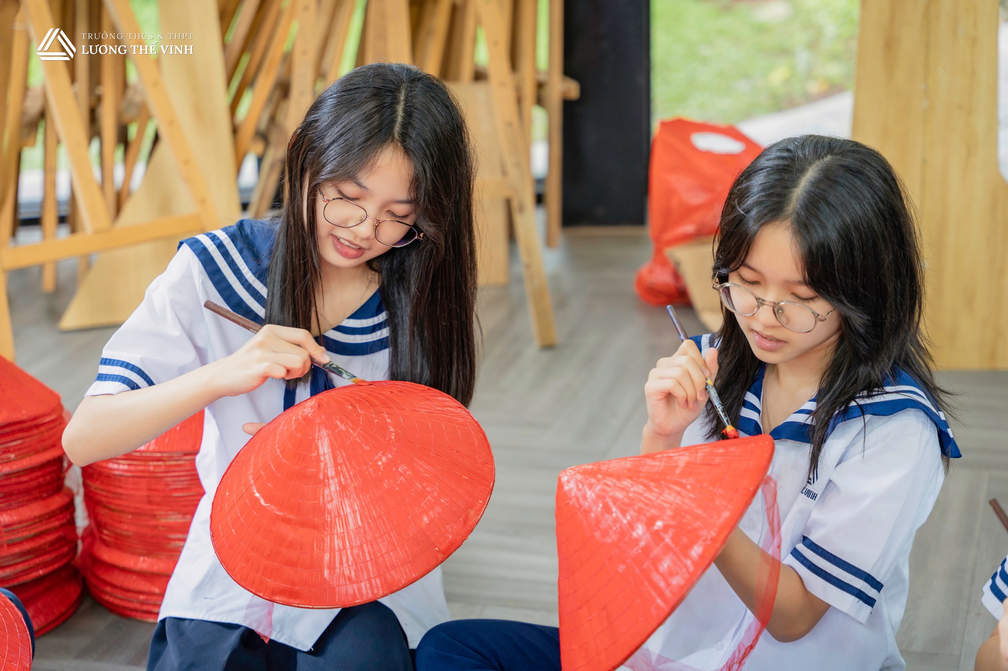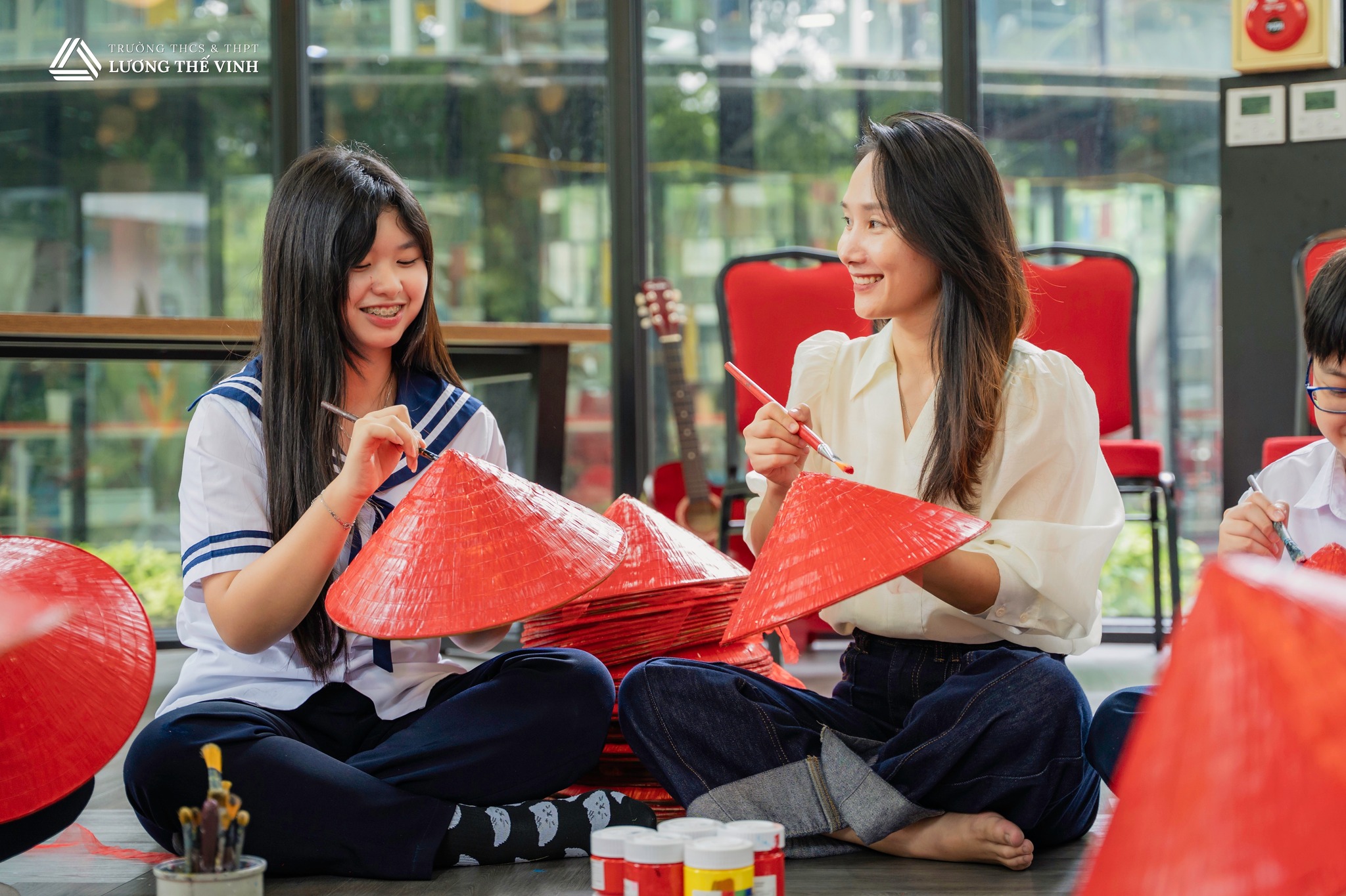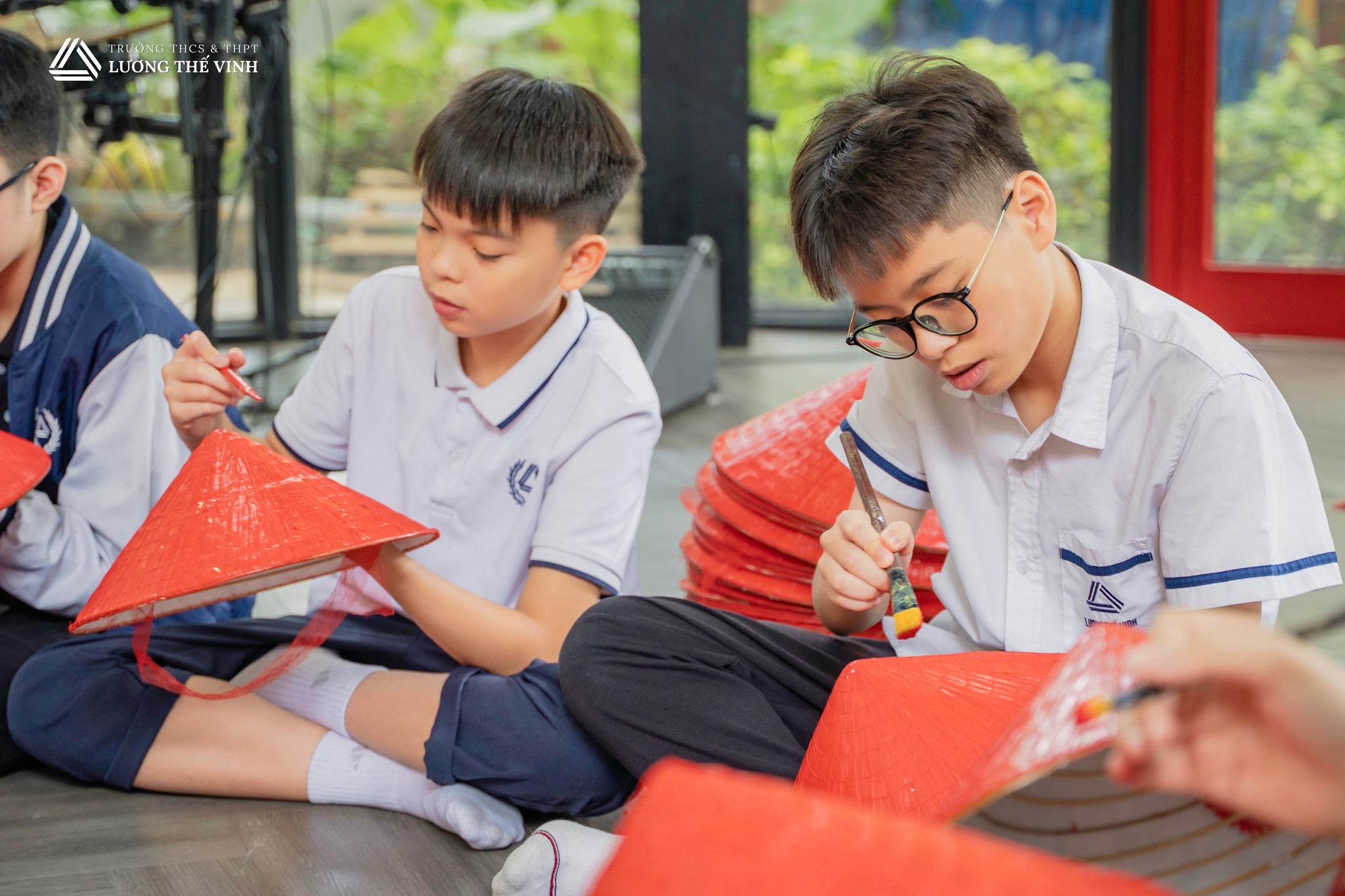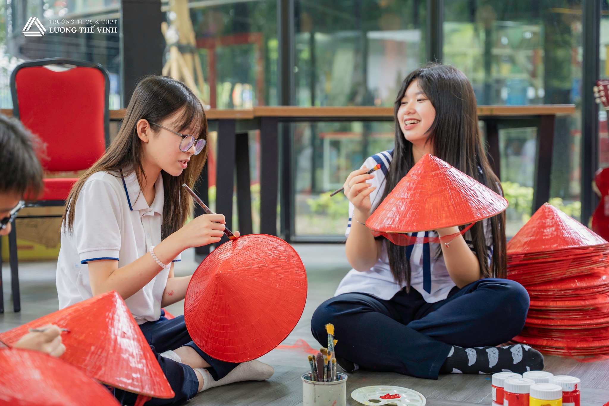 Hòa trong dòng chảy tự hào dân tộc, hoạt động Mỹ thuật của cô trò Trường THCS & THPT Lương Thế Vinh – Cơ sở Cầu Giấy mang một màu sắc rất riêng, những chiếc nón được các họa sĩ nhí “khoác áo mới” với hình ảnh lá cờ đỏ sao vàng rực rỡ.