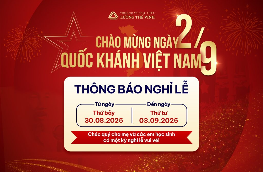 Nhà trường kính chúc Quý cha mẹ và các em học sinh một kỳ nghỉ lễ thật an vui, ý nghĩa bên gia đình và người thân. Hẹn gặp các em học sinh vào ngày Tổng duyệt khai giảng.