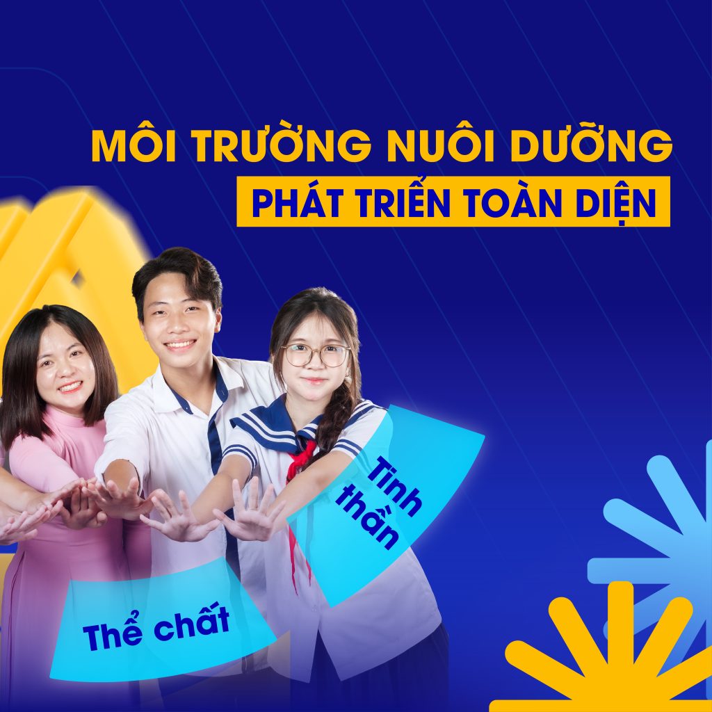 – Đảm bảo thể chất với bán trú dinh dưỡng, môi trường an toàn, CLB phong phú.